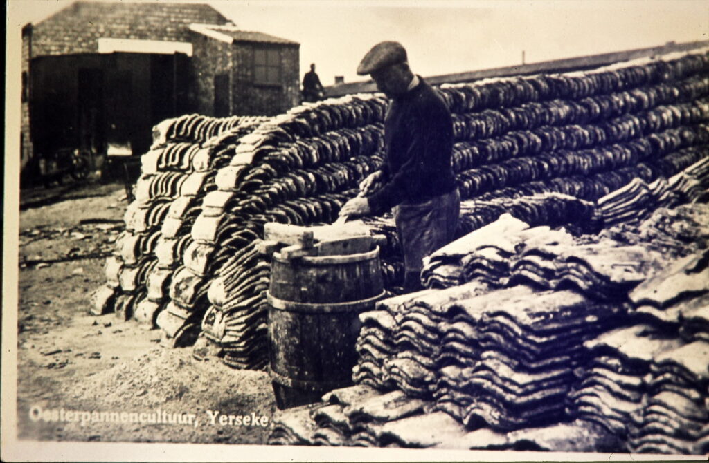 In historic practices, oyster farmers often used clay roof tiles to catch oyster larvae during swarming season. Roof tiles were easily available and low in costs. Ahead of spawning, the roof tiles were placed in the water where they provided a surface for larvae settlement. This historical practice not only underscored clay’s effectiveness to attract oysters but also its accessibility and cost-efficiency.